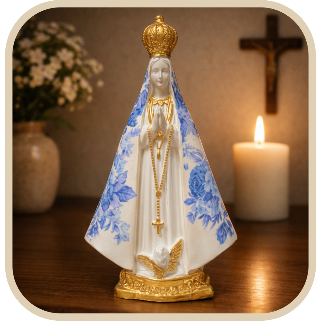Imagem Nossa Senhora Aparecida Decoupage Azul 15cm - Decoração com Fé®