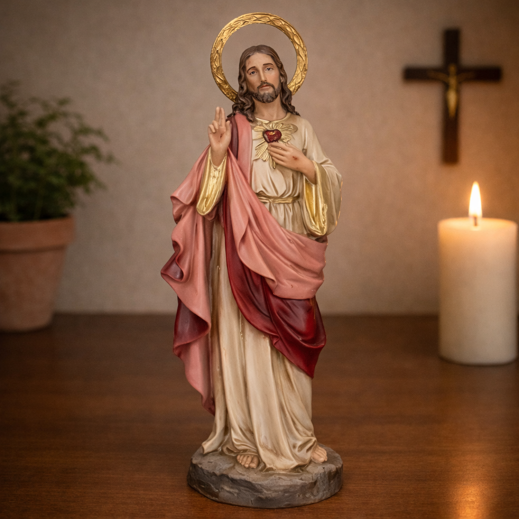 Imagem Sagrado Coração de Jesus 25cm Resina C/ Auréola - Decoração com Fé®