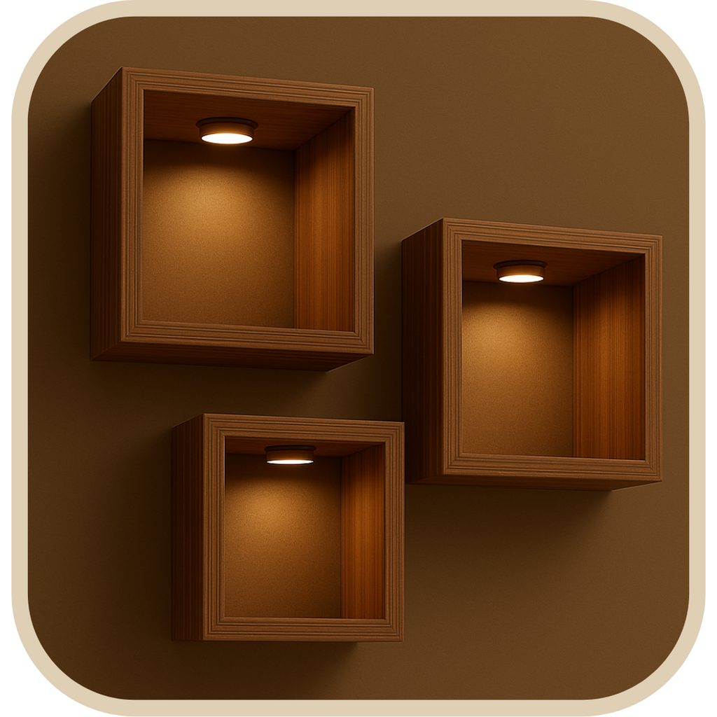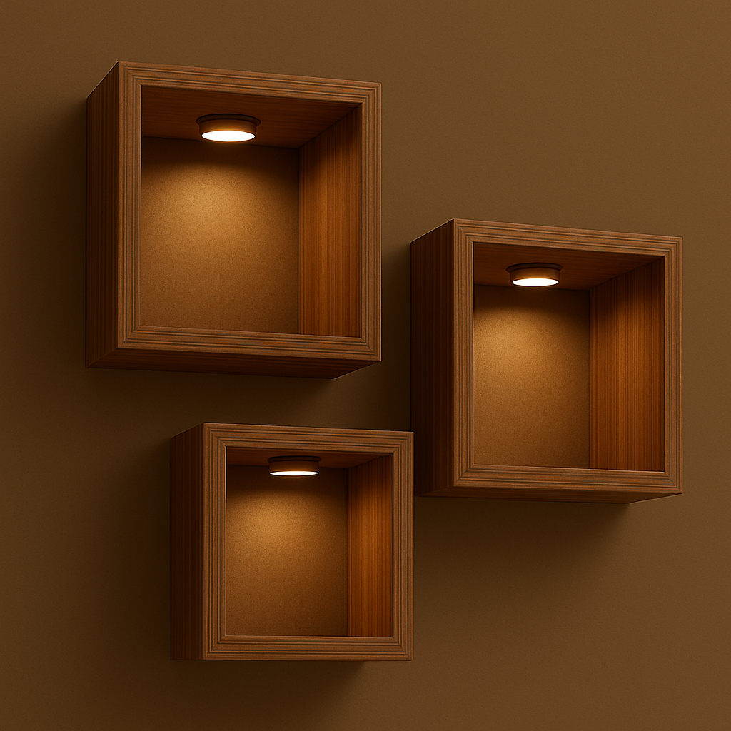 Kit 3 Nichos Marrom com Iluminação (Imagens até 20cm)® – Lar com Fé