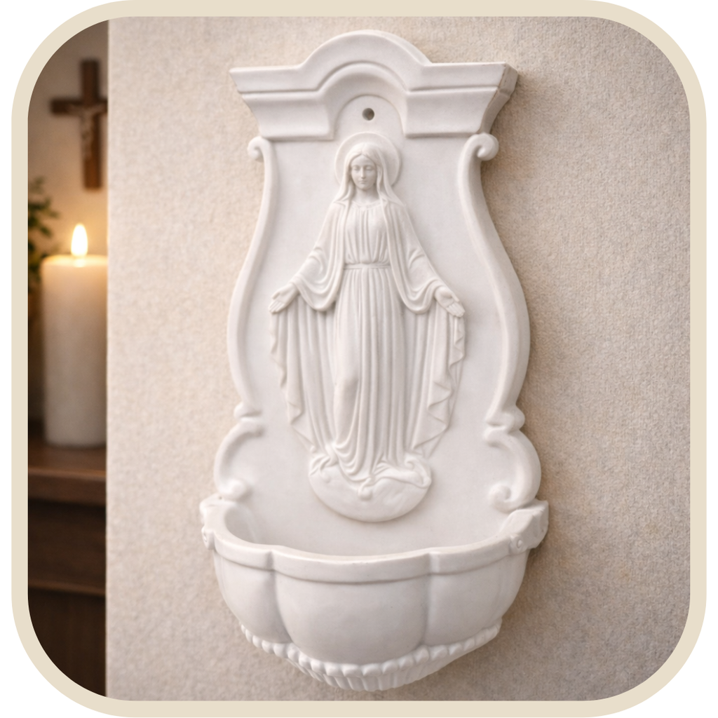 Porta Água Benta Nossa Senhora das Graças em Pó de Mármore®