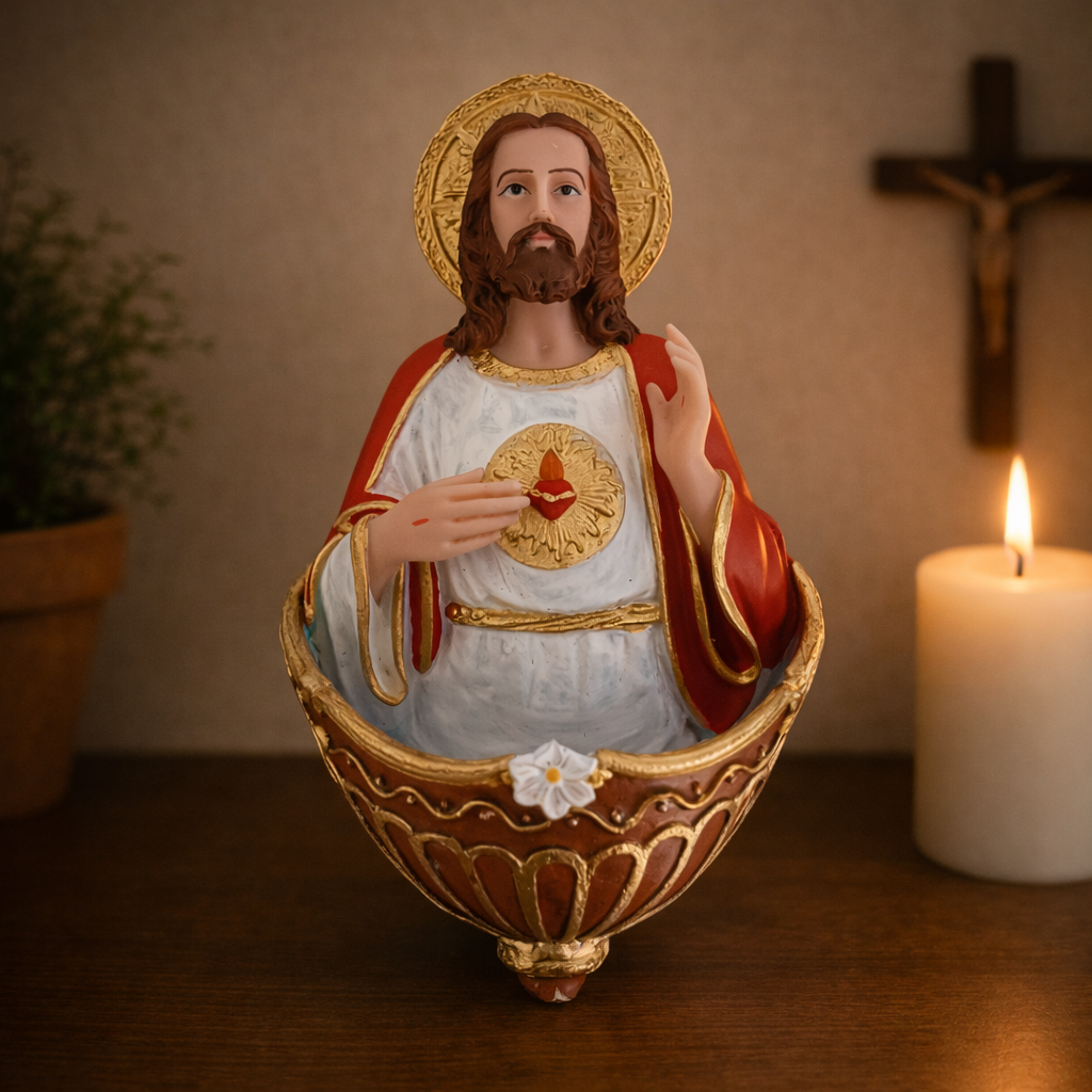 Porta Água Benta Sagrado Coração de Jesus em Resina®