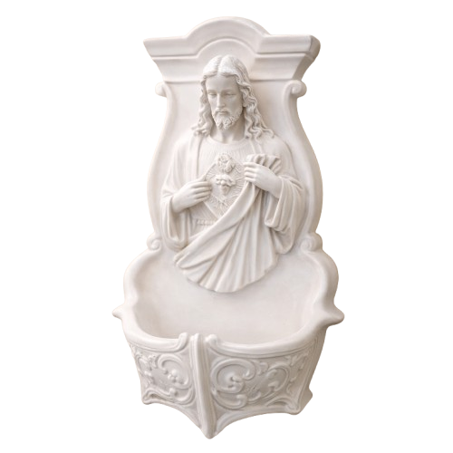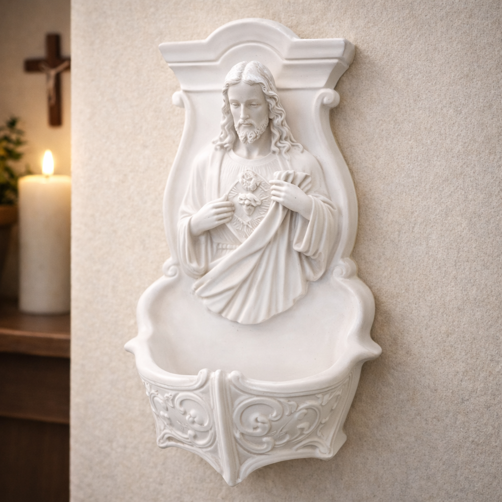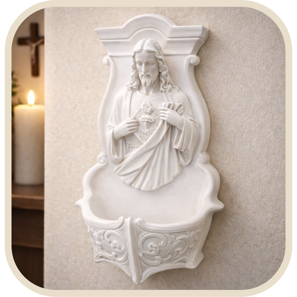Porta Água Benta Sagrado Coração de Jesus 40cm em Pó de Mármore®